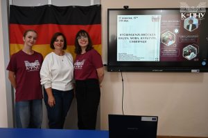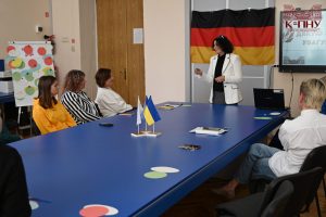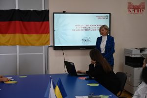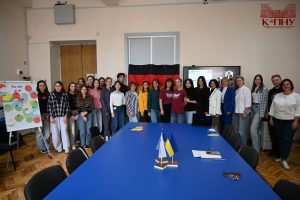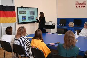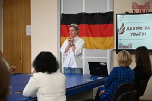 Важливою частиною зустрічі стала презентація студенток факультету іноземної філології спеціальності 014 Середня освіта (Мова та література, німецька) Софії Саволайнен та Анни Фатіної, які поділилися досвідом навчання на міжнародних літніх курсах у Тюбінгенському університеті (Німеччина). Вони розповіли про організацію освітнього процесу, роботу в інтерактивному середовищі, підготовку та складання іспитів. Не менш захопливою виявилася їхня розповідь про позанавчальний час: екскурсії, спілкування з однолітками з різних країн і занурення в німецьку культуру.
